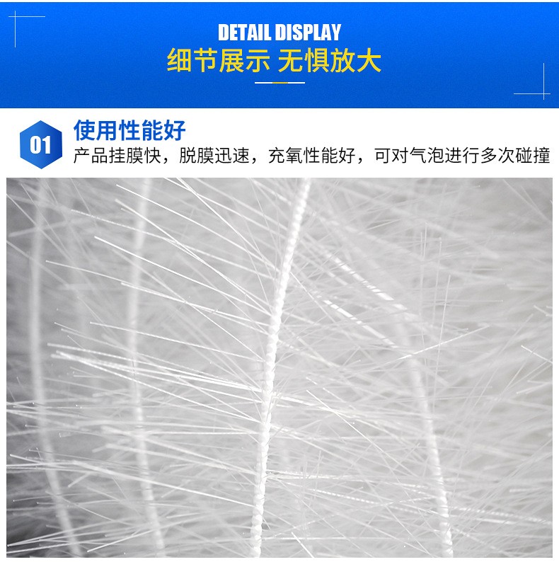 懸掛式立體彈性填料具有高活性,在填料表面生長的微生物膜與填料流化碰撞,曝氣沖刷使微生物處于高活性,處理效果很好。選用聚酰胺 聚稀類等耐腐 奶高溫  耐老化材料,具有親水 吸附 抗熱等優(yōu)勢。