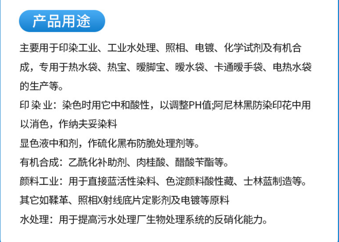 乙酸鈉有機物使用技術(shù)指標(biāo)