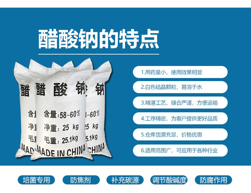 乙酸鈉又名醋酸鈉,是一中有機物,在市場上可以做為緩沖劑 媒染劑 等。乙酸鈉是一種絮凝劑,應(yīng)于工業(yè)固液分離,在化工行業(yè),肉類防腐劑 印染印刷行業(yè)等。